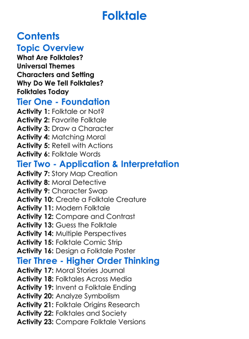Folktale Worksheet Activity Booklet