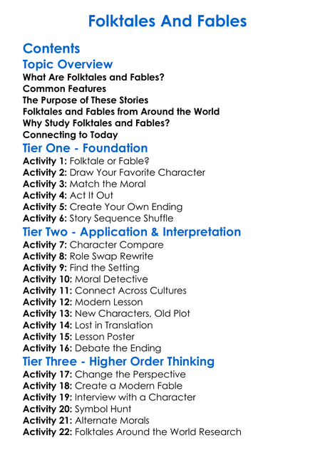Folktales And Fables Worksheet Activity Booklet