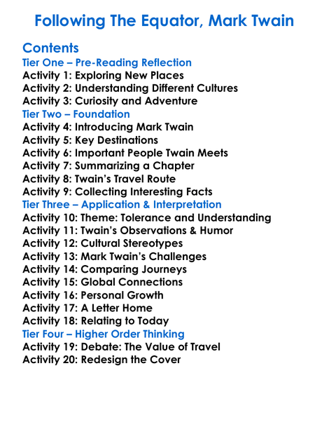 Following The Equator Mark Twain Worksheet Activity Booklet