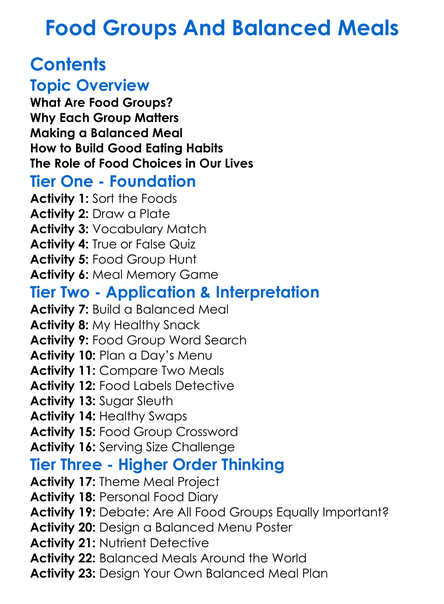 Food Groups And Balanced Meals Worksheet Activity Booklet