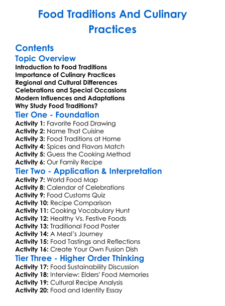 Food Traditions And Culinary Practices Worksheet Activity Booklet
