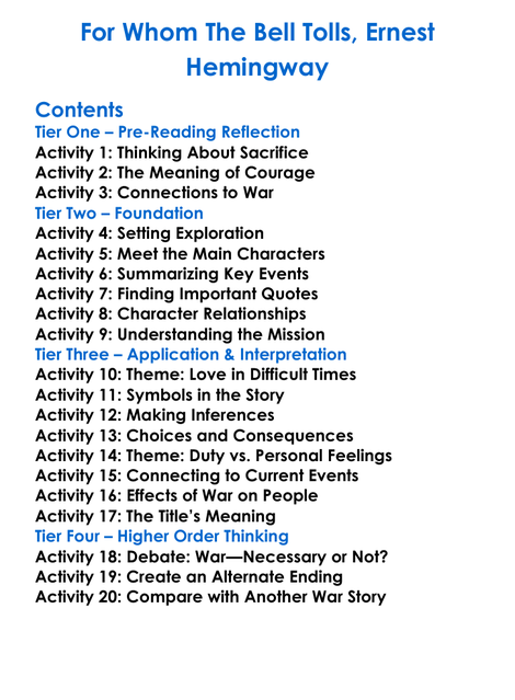 For Whom The Bell Tolls Ernest Hemingway Worksheet Activity Booklet
