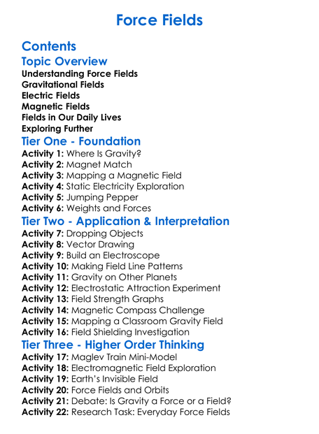 Force Fields Worksheet Activity Booklet