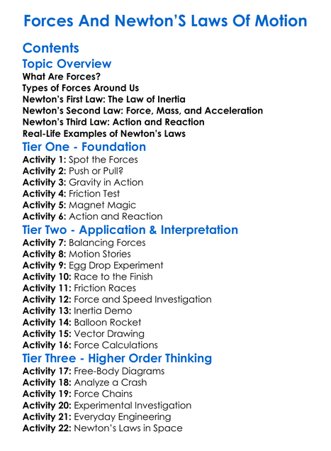 Forces And Newtons Laws Of Motion Worksheet Activity Booklet