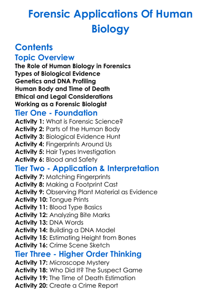 Forensic Applications Of Human Biology Worksheet Activity Booklet
