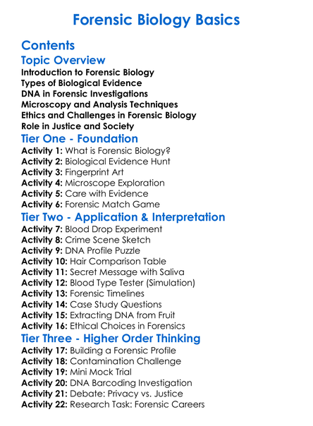 Forensic Biology Basics Worksheet Activity Booklet
