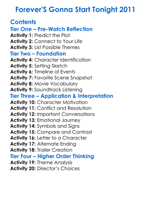 Forevers Gonna Start Tonight 2011 Worksheet Activity Booklet
