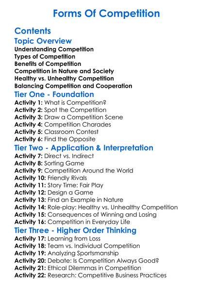 Forms Of Competition Worksheet Activity Booklet