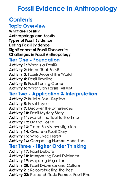 Fossil Evidence In Anthropology Worksheet Activity Booklet