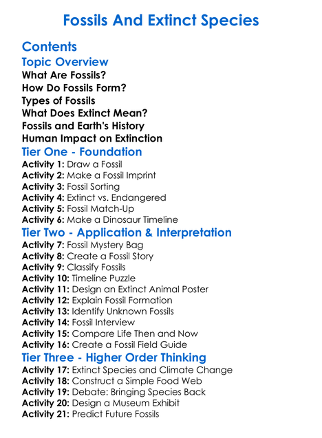 Fossils And Extinct Species Worksheet Activity Booklet