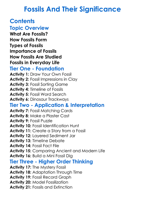 Fossils And Their Significance Worksheet Activity Booklet