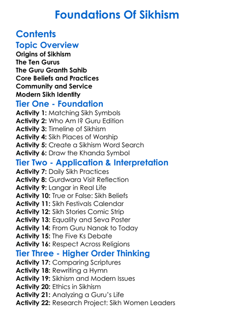 Foundations Of Sikhism Worksheet Activity Booklet