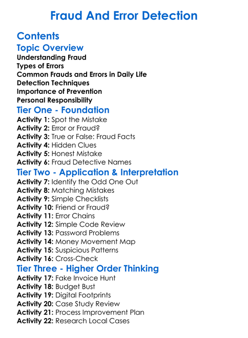 Fraud And Error Detection Worksheet Activity Booklet