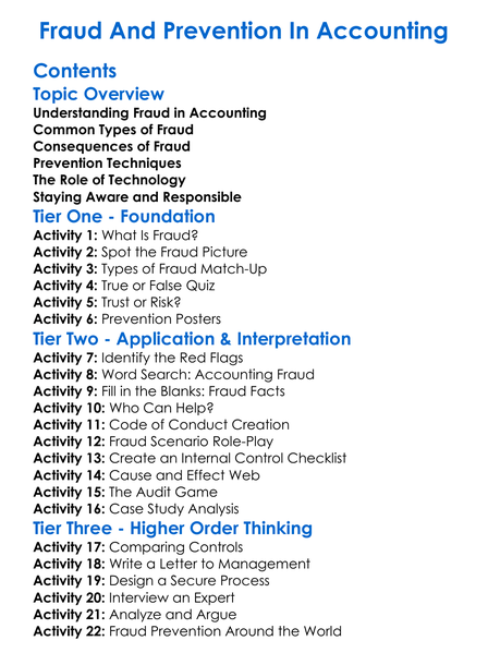 Fraud And Prevention In Accounting Worksheet Activity Booklet