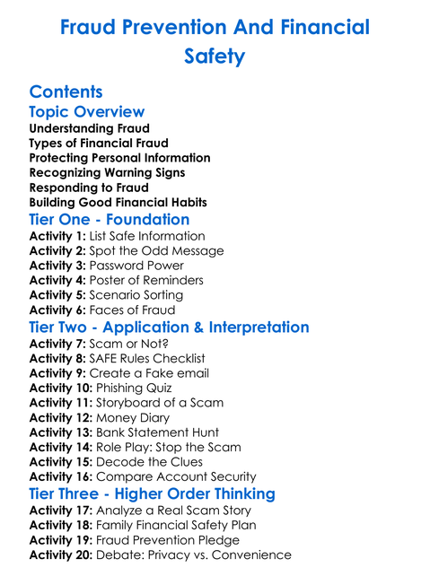 Fraud Prevention And Financial Safety Worksheet Activity Booklet