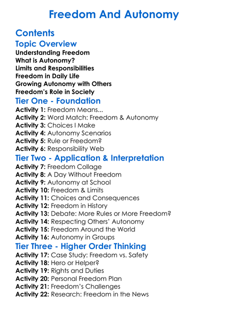 Freedom And Autonomy Worksheet Activity Booklet