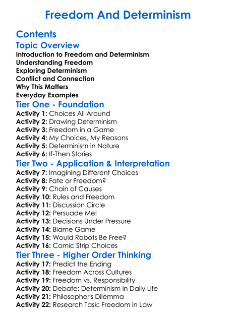 Freedom And Determinism Worksheet Activity Booklet