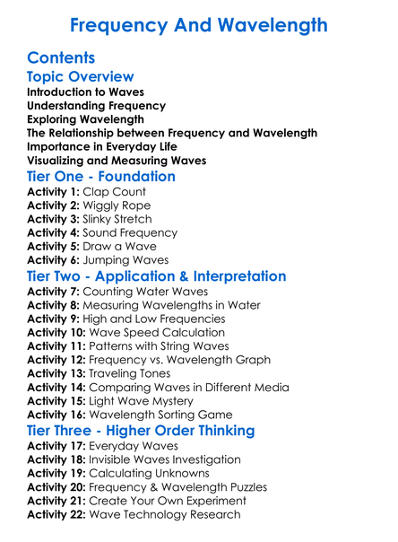 Frequency And Wavelength Worksheet Activity Booklet