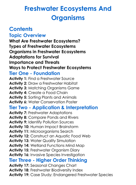 Freshwater Ecosystems And Organisms Worksheet Activity Booklet
