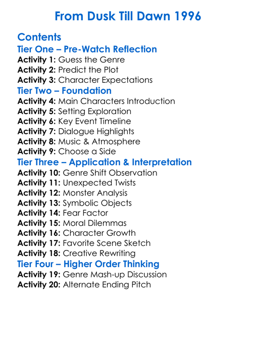 From Dusk Till Dawn 1996 Worksheet Activity Booklet