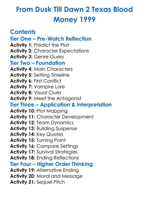 From Dusk Till Dawn 2 Texas Blood Money 1999 Worksheet Activity Booklet