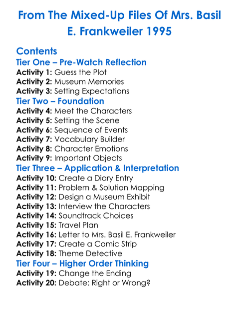 From The Mixed-Up Files Of Mrs Basil E Frankweiler 1995 Worksheet Activity Booklet