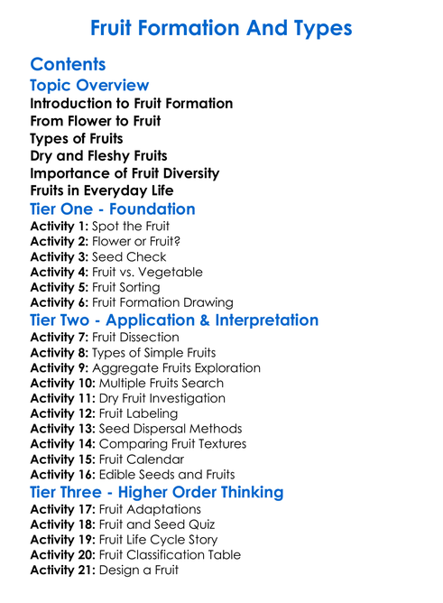 Fruit Formation And Types Worksheet Activity Booklet
