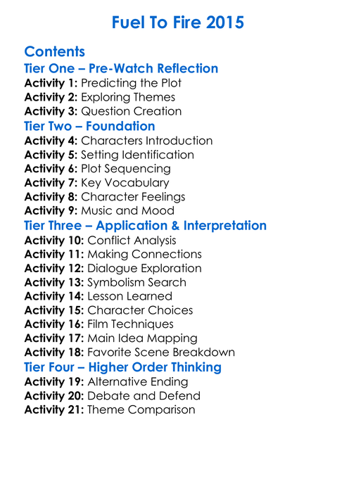 Fuel To Fire 2015 Worksheet Activity Booklet