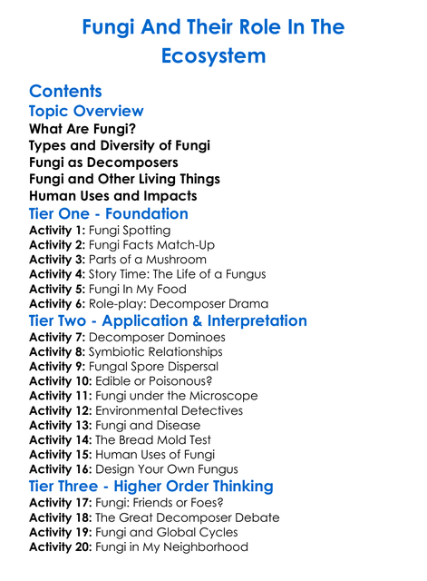 Fungi And Their Role In The Ecosystem Worksheet Activity Booklet