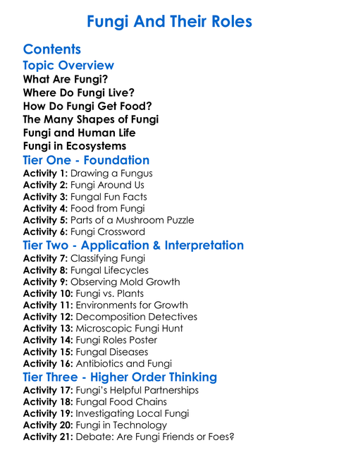 Fungi And Their Roles Worksheet Activity Booklet