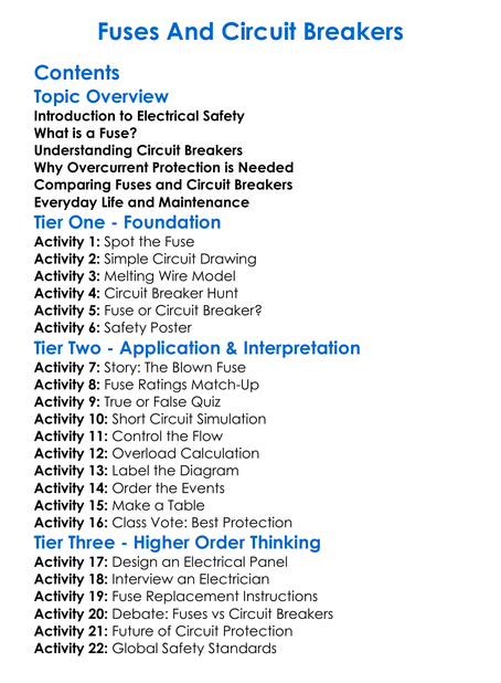 Fuses And Circuit Breakers Worksheet Activity Booklet