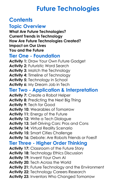 Future Technologies Worksheet Activity Booklet