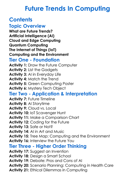 Future Trends In Computing Worksheet Activity Booklet