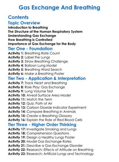 Gas Exchange And Breathing Worksheet Activity Booklet