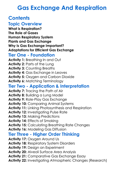 Gas Exchange And Respiration Worksheet Activity Booklet