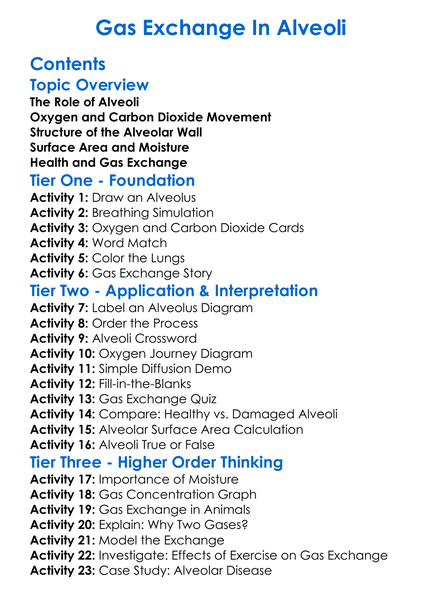 Gas Exchange In Alveoli Worksheet Activity Booklet