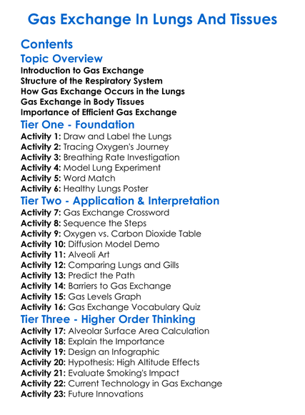 Gas Exchange In Lungs And Tissues Worksheet Activity Booklet