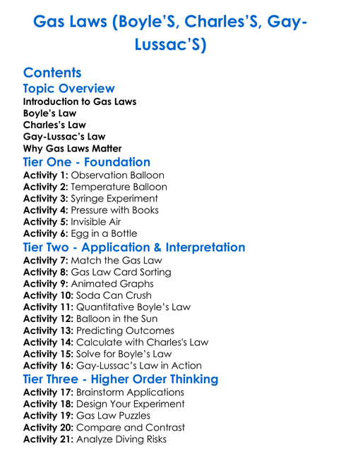 Gas Laws Boyles Charless Gay-Lussacs Worksheet Activity Booklet