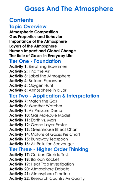 Gases And The Atmosphere Worksheet Activity Booklet
