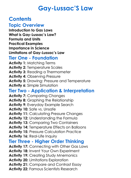 Gay-Lussacs Law Worksheet Activity Booklet