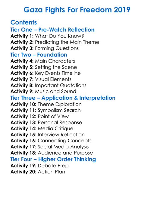 Gaza Fights For Freedom 2019 Worksheet Activity Booklet