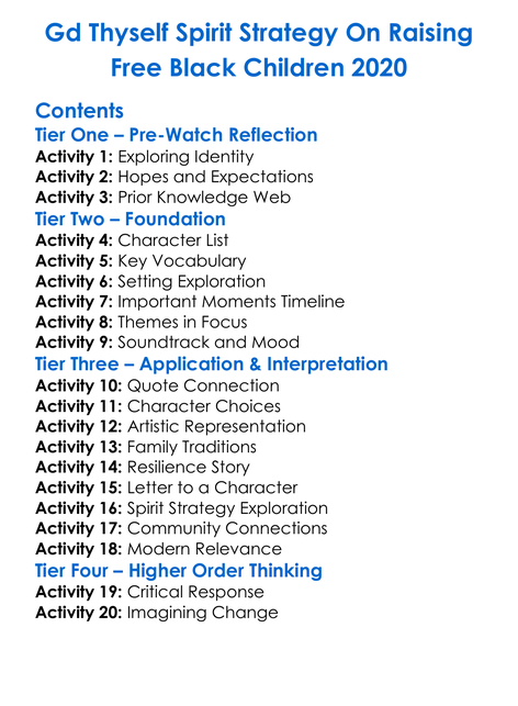 Gd Thyself Spirit Strategy On Raising Free Black Children 2020 Worksheet Activity Booklet
