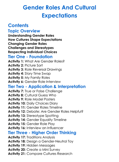 Gender Roles And Cultural Expectations Worksheet Activity Booklet