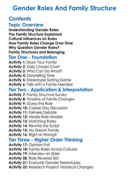 Gender Roles And Family Structure Worksheet Activity Booklet