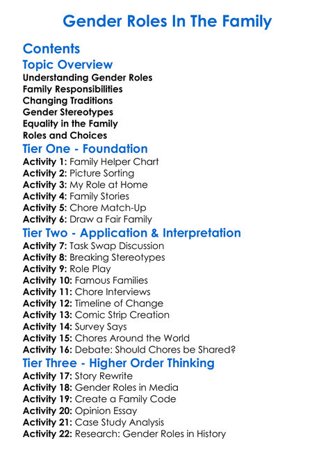 Gender Roles In The Family Worksheet Activity Booklet