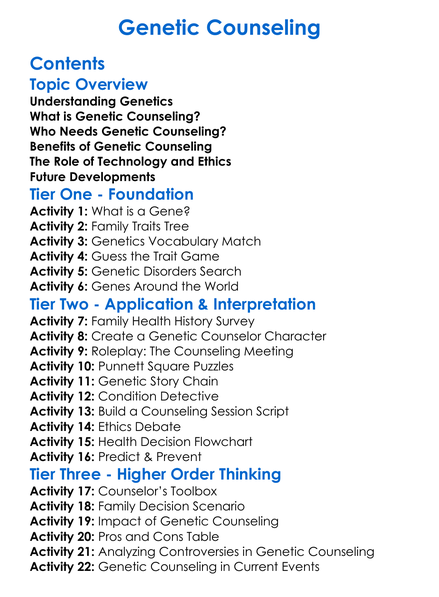 Genetic Counseling Worksheet Activity Booklet