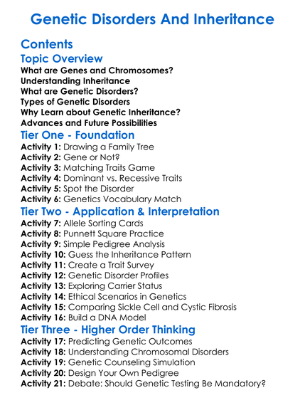Genetic Disorders And Inheritance Worksheet Activity Booklet