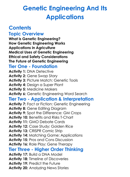 Genetic Engineering And Its Applications Worksheet Activity Booklet