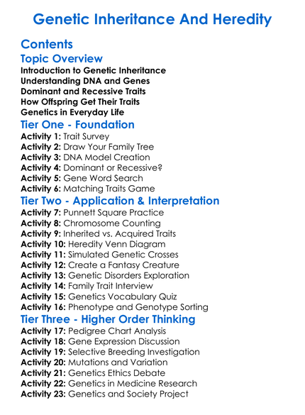 Genetic Inheritance And Heredity Worksheet Activity Booklet