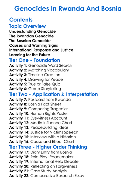 Genocides In Rwanda And Bosnia Worksheet Activity Booklet